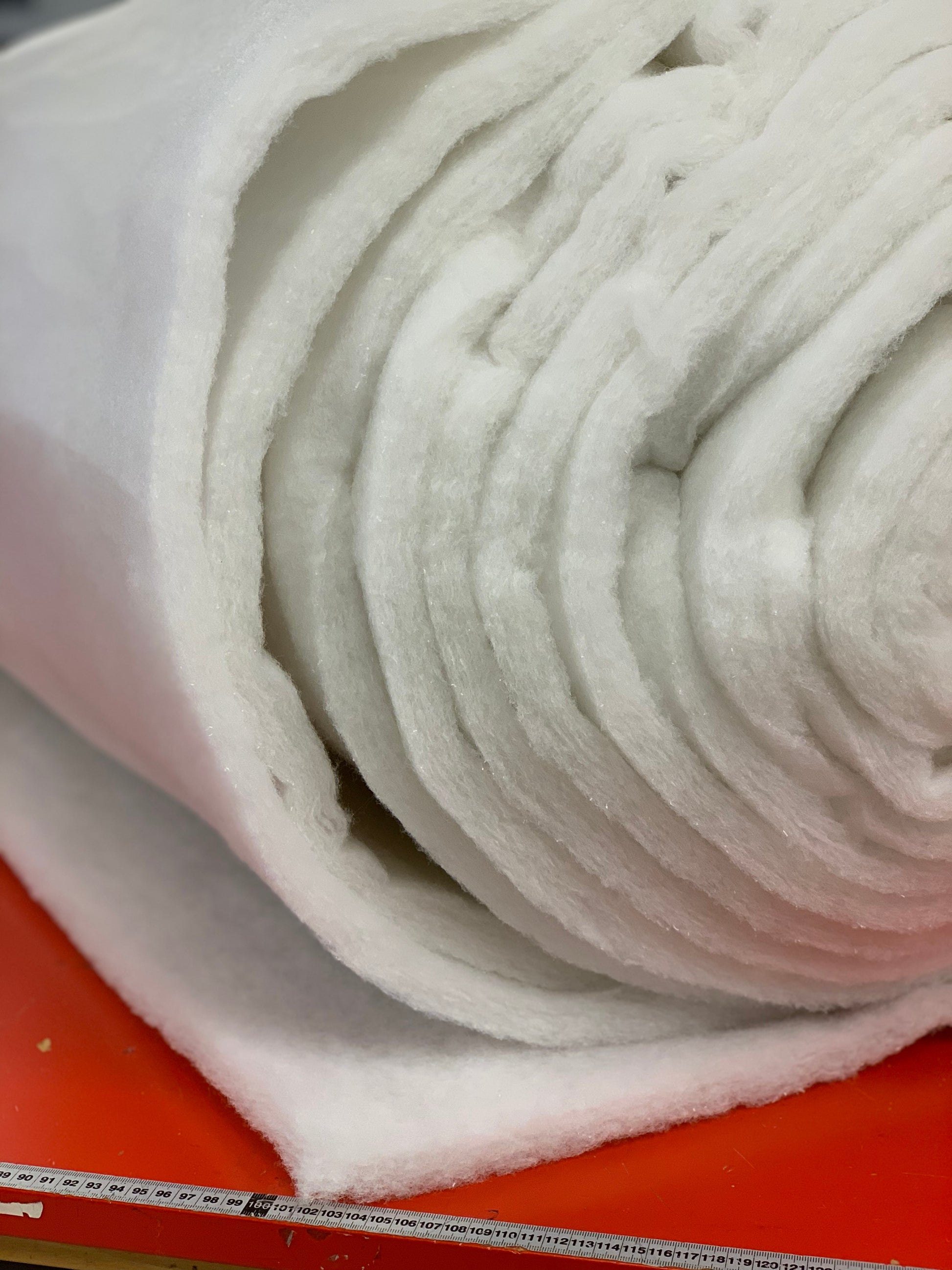 2. Skär skumgummit i mått efter skivan. Limma på skumgummit på skivan och lägg på vadden.